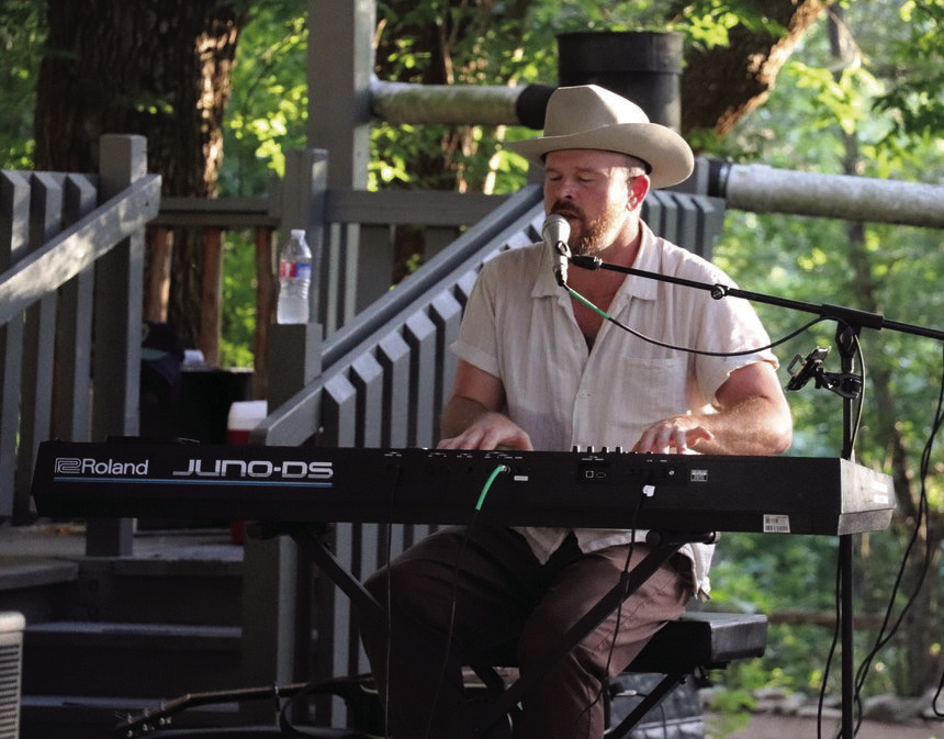 Multi-instrumentalist Andy Davis, here on keyboards, and his band played the Moondance Concert Series on June 14 at Cibolo Nature Center. Davis, on keyboards, picked up the acoustic guitar as well. Guitarist Mike Johnson gets into his playing as well. The day’s heat subsided as the evening settled in for those attending. Star photos by Jeff B. Flinn