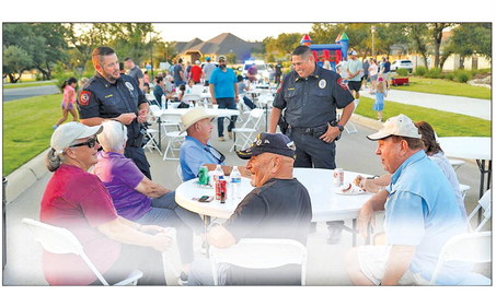 Boerne Police Chief Steve Perez, standing right, shares a laugh with Boerne residents during a previous National Night Out, an annual event that promotes police-community partnerships and neighborhood camaraderie. Tuesday, Oct. 7 is the date for this year’s event, with events planned in Boerne, Comfort, Fair Oaks Ranch and several other neighborhoods and communities, including visits by the Kendall County Sheriff’s Office. For details, contact the respective law enforcement non-emergency numbers. Courtesy photo
