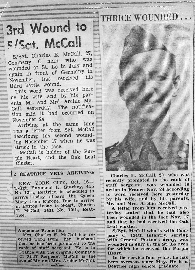 A second involved a shot or shrapnel to the face, but the present-day McCalls have not found an account detailing his third injury.
