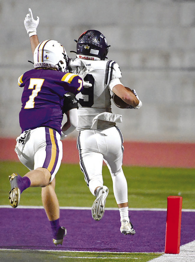Pieper defenders did a lot of trying to chase down Champion receivers last Friday, especially in the first half. Zach Lopez (9) gets behind a Warriors defender on his way to the end zone.