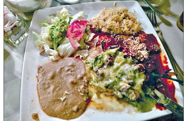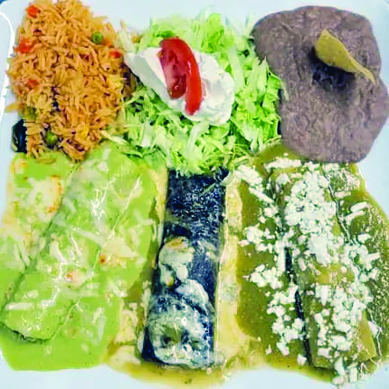 “Three soft enchiladas absolutely packed with cheesy goodness,” she reported, “then topped with this tomatillo sauce that was tangy, bright, a little spicy, and so fresh it tasted as if they’d just made it.”