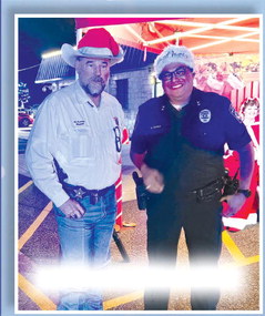 Kendall County Sheriff Al Auxier (left) chats with Boerne Police Chief Steve Perez during Saturday’s Blue Santa Program distribution event.