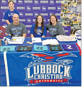 (LEFT) Boerne High’s Haley Wheeler recently signed a national letter of intent to play volleyball at Lubbock Christian University. Haley was joined by family and friends at a ceremony held at Greyhound Gym on national signing day.