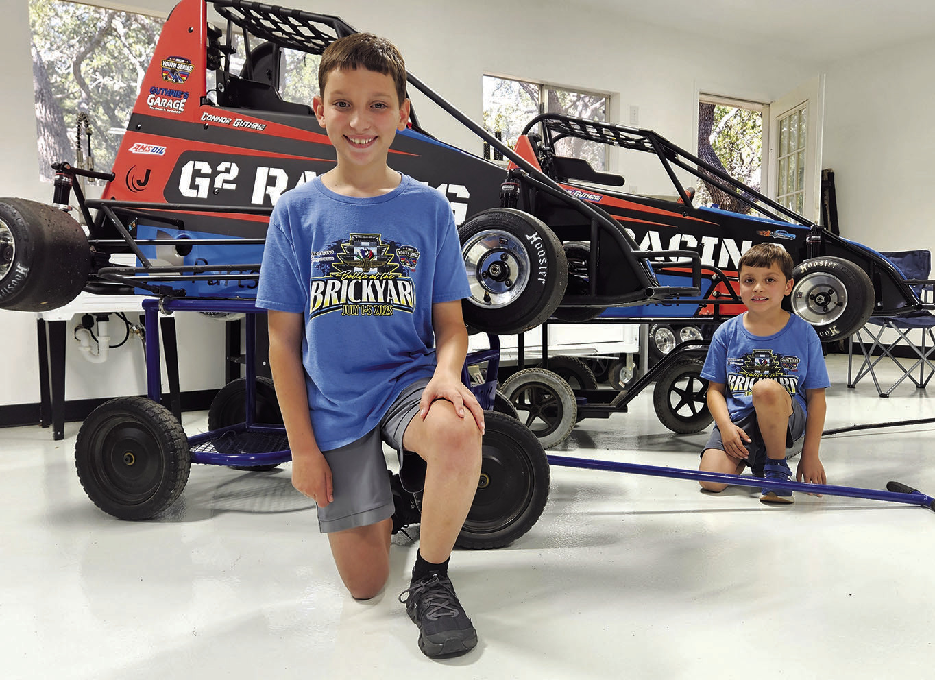 Connor Guthrie, 11, and brother Ryan 7, are top racers in the Lone Star Quarter Midget Association and River City Quarter Midget Association. Star photo by Jeff B. Flinn