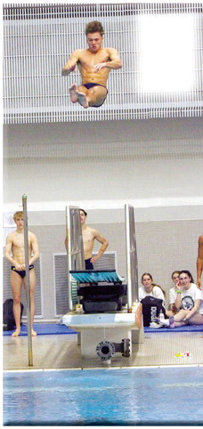 Champion’s Gavin Richmond performs a dive at last Saturday’s state meet where Richmond finished sixth with 389.20 points.
