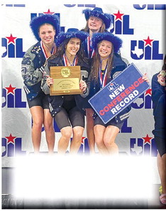 The 400-free relay of Cora Skoog, Kate Canales, Karly Whitehead and Addison Graham on the podium after winning the race and setting a new 5A record in the process. The fearsome foursome also set a record in the 200-medley relay, while Canales broke the 5A mark in the 100 breaststroke as the Lady Chargers set three 5A records at the meet.