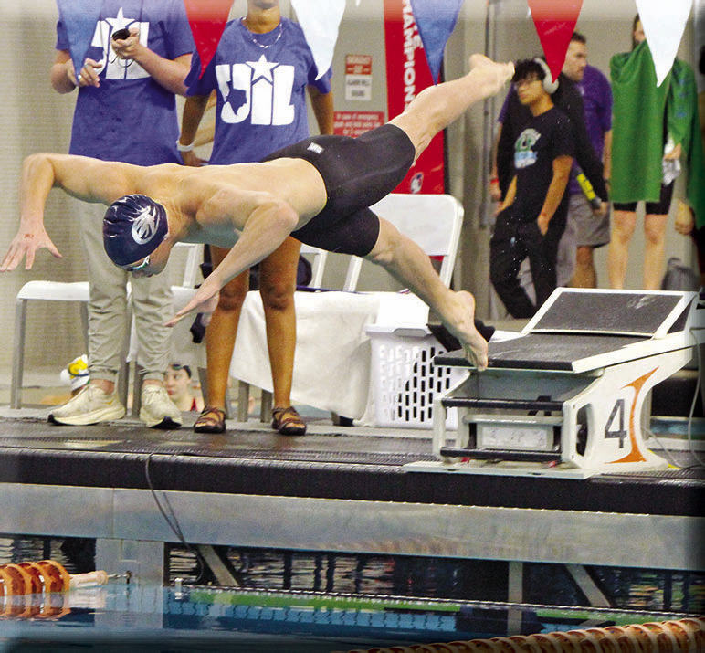 Will Harrison leaves the starting block in the 100 freestyle where he finished second to earn a silver medal.Marcelo Garcia, Carson Muenchow and Aaron Mendoza watch as teammate Will Harrison finishes one of the relay races at Saturday’s state meet.Madi Neuman, Meghan Jackson and Addison Graham watch from the deck near the starting block as teammate Karly Whitehead races in the 200-freestyle relay.