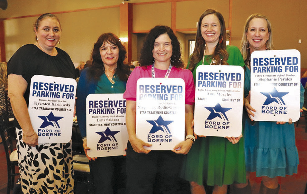 The Greater Boerne Chamber of Commerce teamed up with Ford of Boerne to recognize BISD’s “Teachers of the Year” recipients from each school, and “Employees of the Year” among support staff and the district office. “Our students, your children, rise to every challenge.”